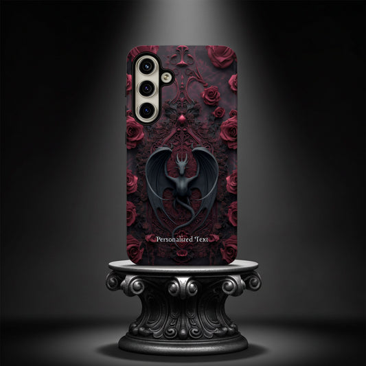 Gothic Dragon Rose Phone Case – Dark Fantasy Dragon with Crimson Roses and Optional Personalized Text