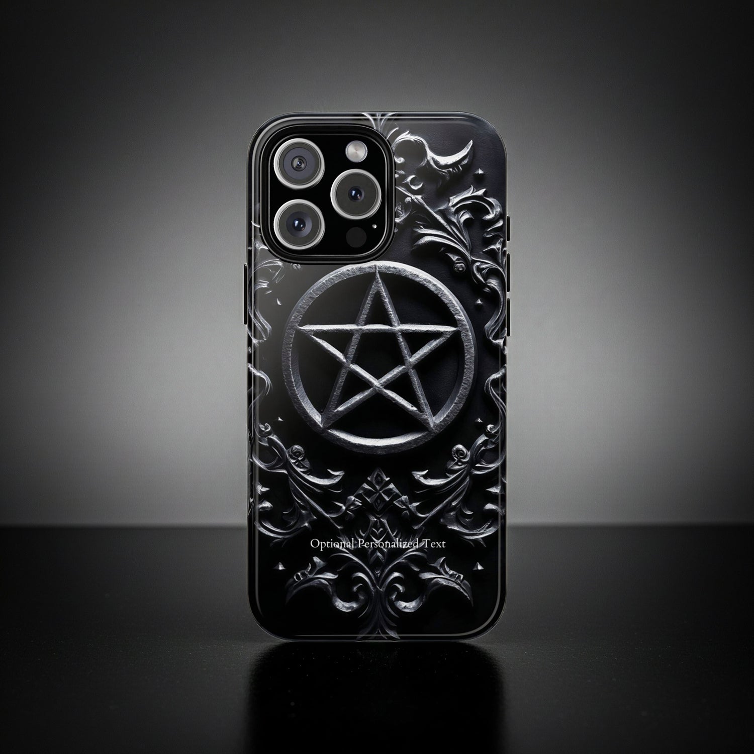 Gothic Raven and Skull Phone Case - Dark Baroque Style with Optional Personalized Text (GLOSSY VERSION)