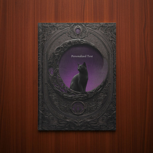 Gothic Black Cat Journal – Dark Fantasy Moon Notebook with Optional Personalized Text