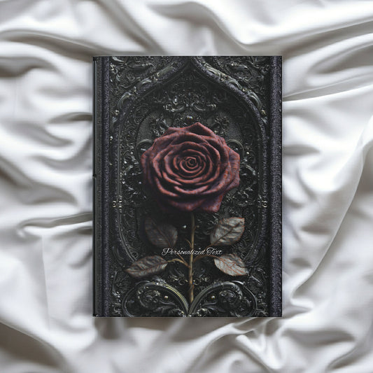 Gothic Red Rose Journal – Dark Romantic Floral Notebook with Optional Personalized Text