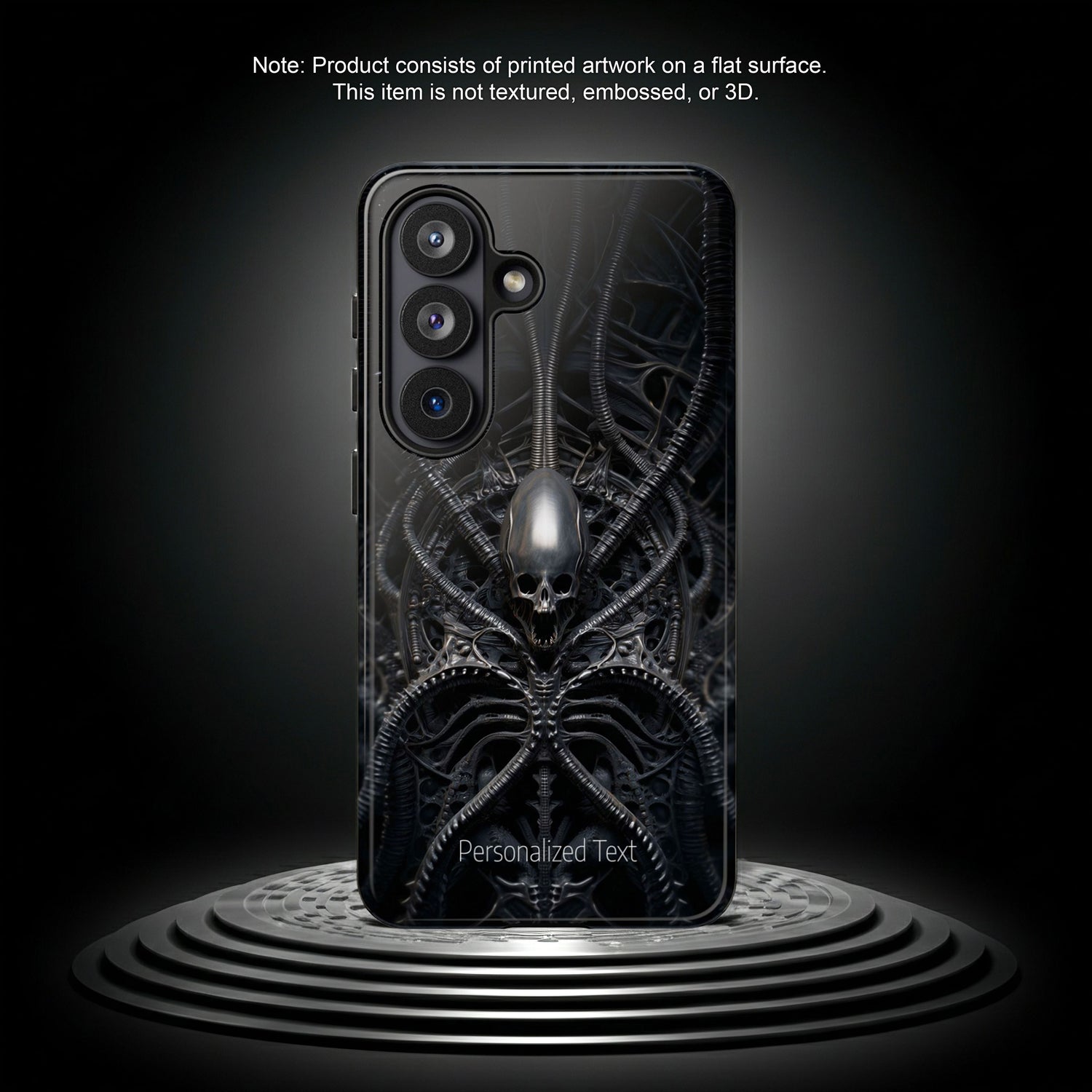 Biomechanical Horror Phone Case – Dark Sci-Fi Design for iPhone, Samsung Galaxy, Google Pixel Devices