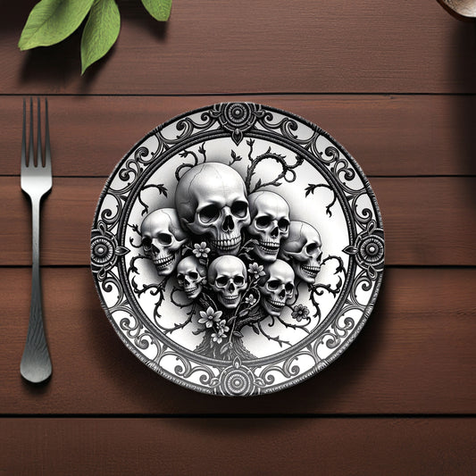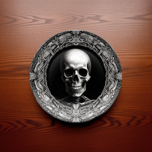 Gothic Skull Plate - Macabre Skeleton Art Decor for Gothic Homes & Halloween