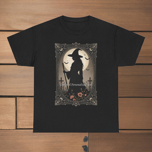 Gothic Witch Silhouette T-Shirt with Optional Personalized Text