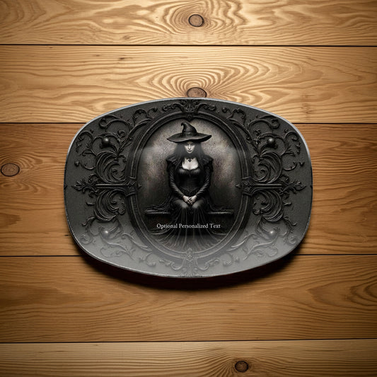 Gothic Witch Portrait Platter - Ornate Dark Art Tray with Optional Personalization