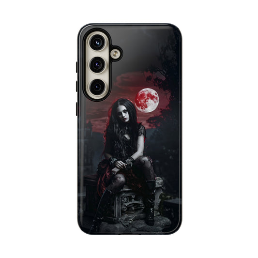 Gothic Vampire Girl Phone Case - Dark Fantasy Design with Blood Moon for iPhone, Samsung Galaxy, and Google Pixel Devices