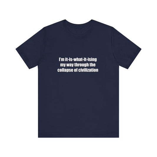 I'm It-Is-What-It-Ising My Way Through the Collapse of Civilization T-Shirt – Humorous Graphic Tee for Casual Wear