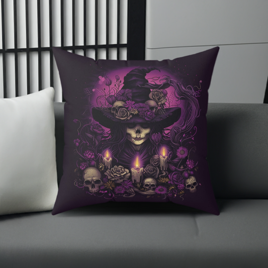 Gothic Witch and Skulls Spun Polyester Pillow - Halloween Home Decor