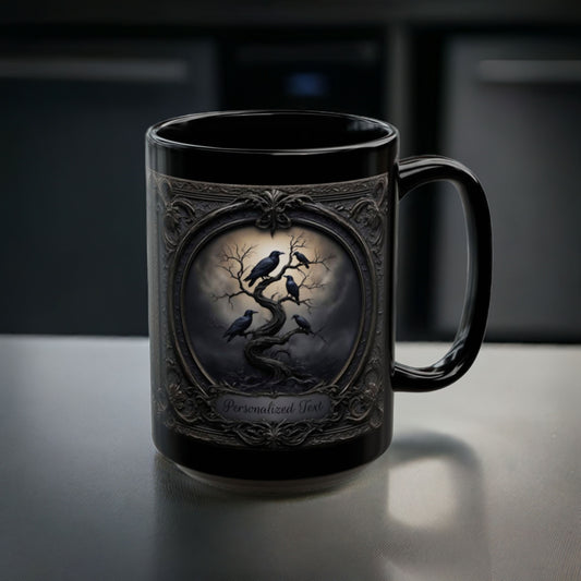 Personalized Gothic Raven Mug – Dark Aesthetic Ceramic Coffee Cup