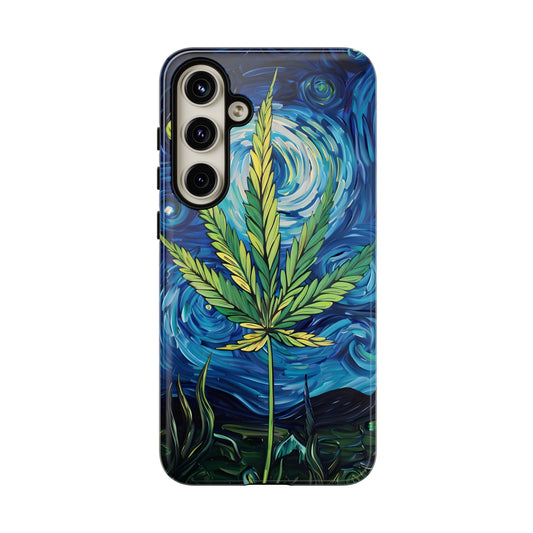 Pot Leaf Starry Night Phone Case – Artistic Marijuana Design for iPhone, Samsung Galaxy, and Google Pixel Devices