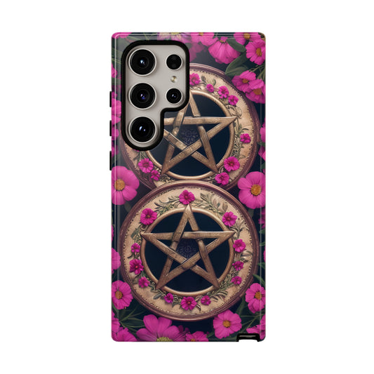 Pentacles in Pink Flowers Tough Phone Case – Mystical Floral Design for iPhone, Samsung Galaxy, and Google Pixel Devices