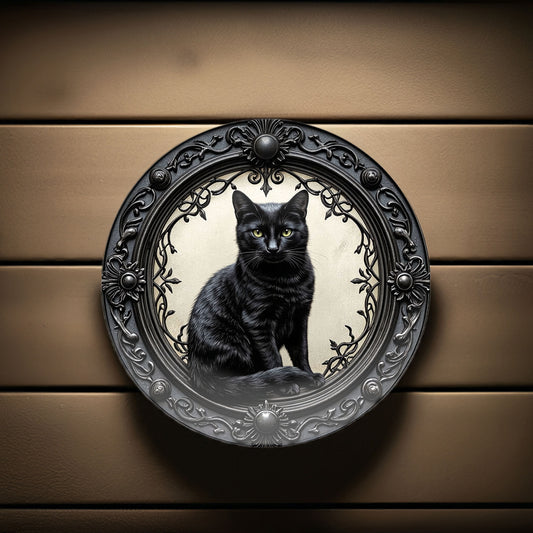 Black Cat Gothic Plate - Mystical Feline Decorative Dish for Witchy Homes
