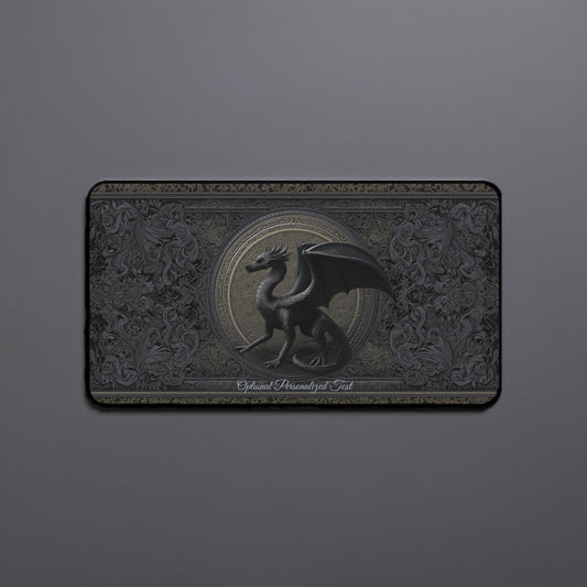 Black Gothic Dragon Desk Mat – Personalized Medieval Fantasy Desk Pad for Office or Gaming
