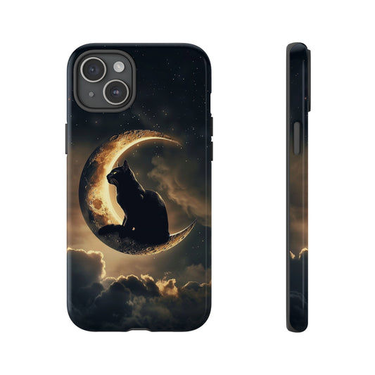 Black Cat on Crescent Moon Phone Case - Mystical Night Sky Design for iPhone, Samsung Galaxy, and Google Pixel Devices