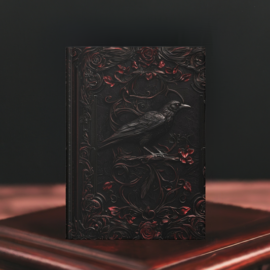 Black Raven Journal with Intricate Floral Design - Gothic Stationery