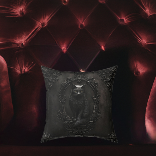Black Cat Gothic Decor Pillow - Elegant Spun Polyester Throw Pillow with Ornate Frame Design