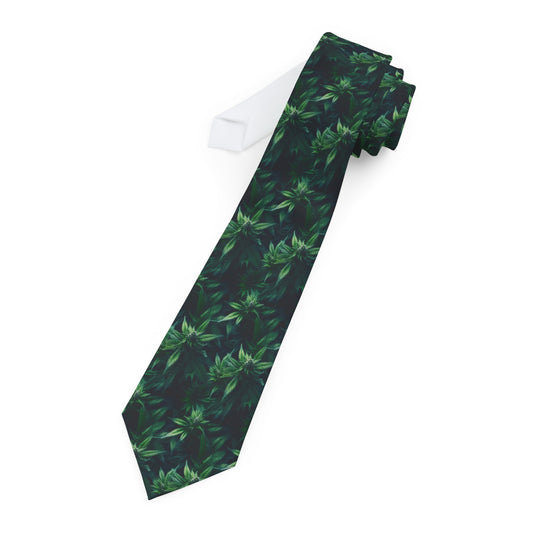 Cannabis Necktie – Green Weed Marijuana Buds Design for Stoner Formal Wear