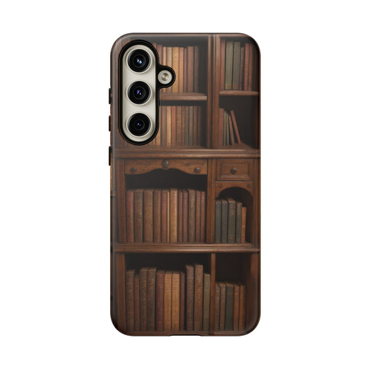 Book Shelf Phone Case – Vintage Library Design for iPhone, Samsung Galaxy, and Google Pixel Devices