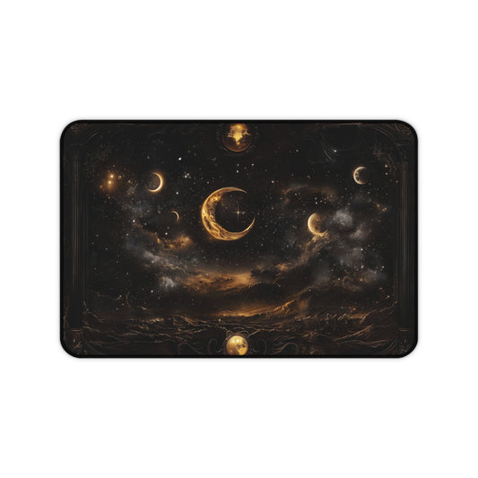 Celestial Night Sky Desk Mat - Cosmic Moon Phases Gaming Mouse Pad with Dark Starry Design