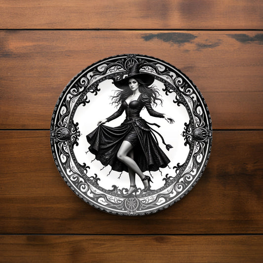 Elegant Gothic Witch Plate - Dark Sorceress in Victorian Frame