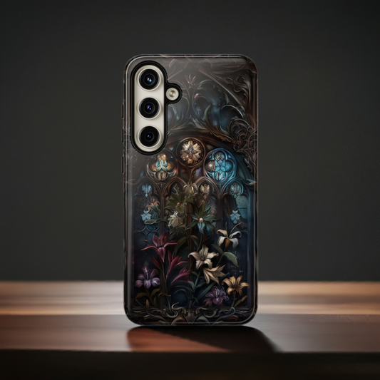 Elegant Gothic Flower Art Phone Case - Intricate Floral Design for iPhone, Samsung Galaxy, and Google Pixel Devices