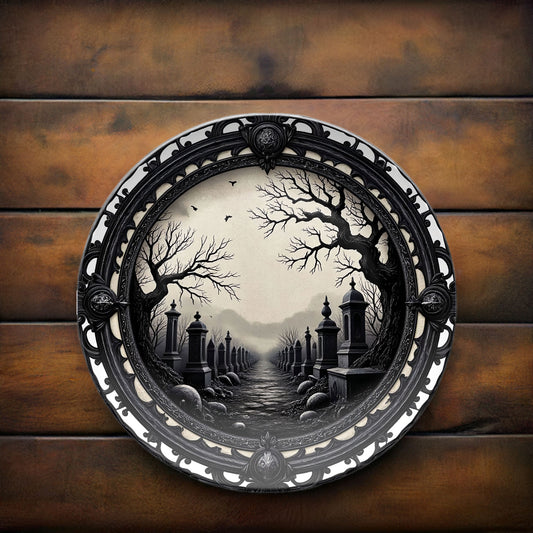 Gothic Graveyard Dinner Plate – Haunted Cemetery Decorative Dish
