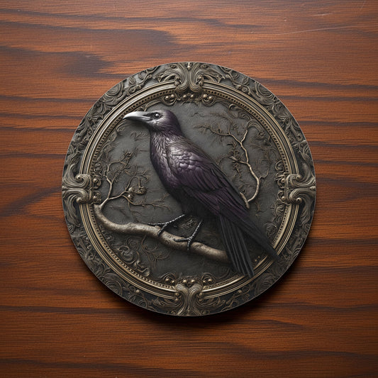 Gothic Raven Coaster - Ornate Dark Art Drink Mat with Cork Backing