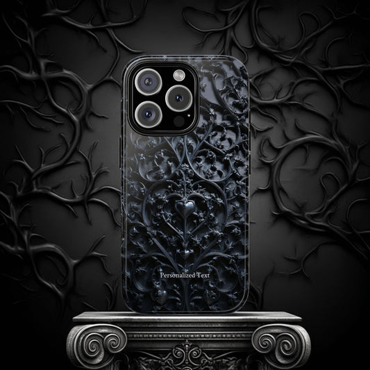 Gothic Heart Vines Phone Case - Dark Ornate Pattern with Personalized Text (Matte Finish)