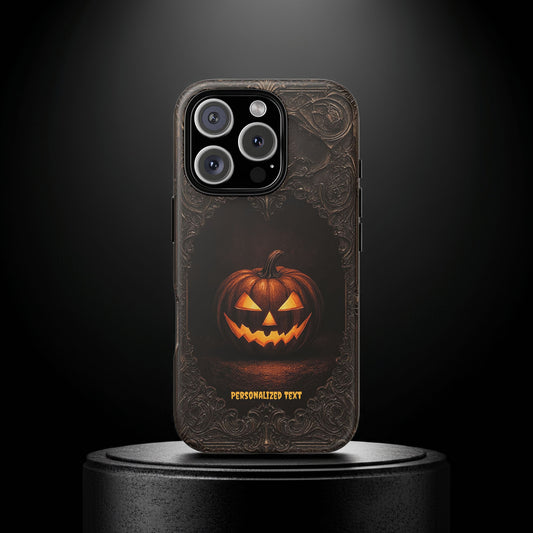 Gothic Halloween Jack-o'-Lantern Phone Case with Optional Personalized Text (Matte Finish)