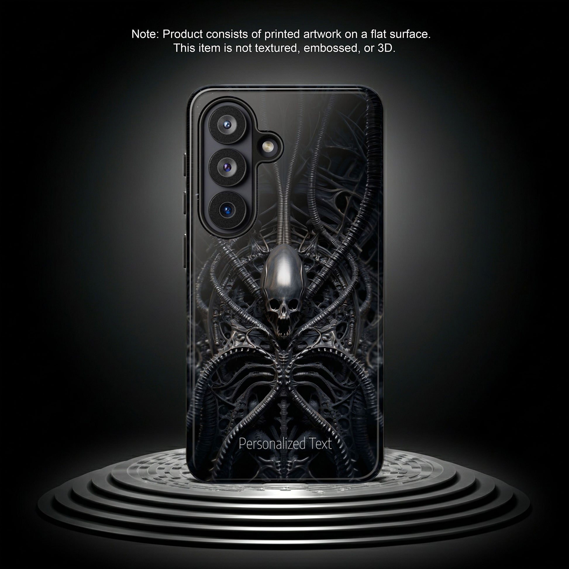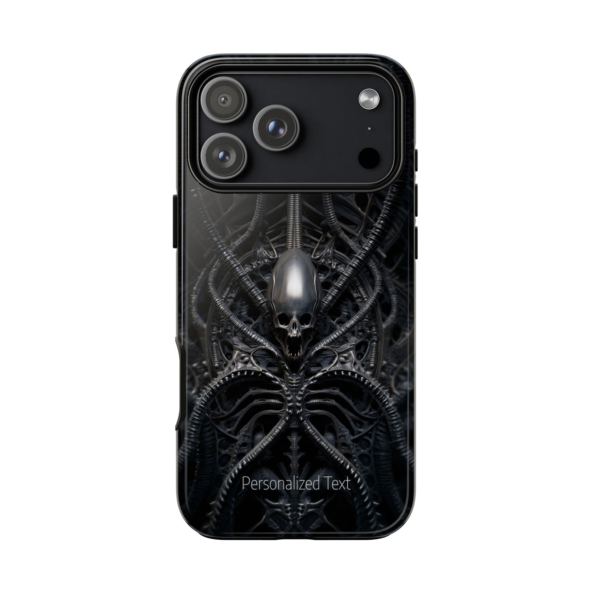 Biomechanical Skull Phone Case – Dark Sci-Fi Gothic Design with Optional Personalized Text