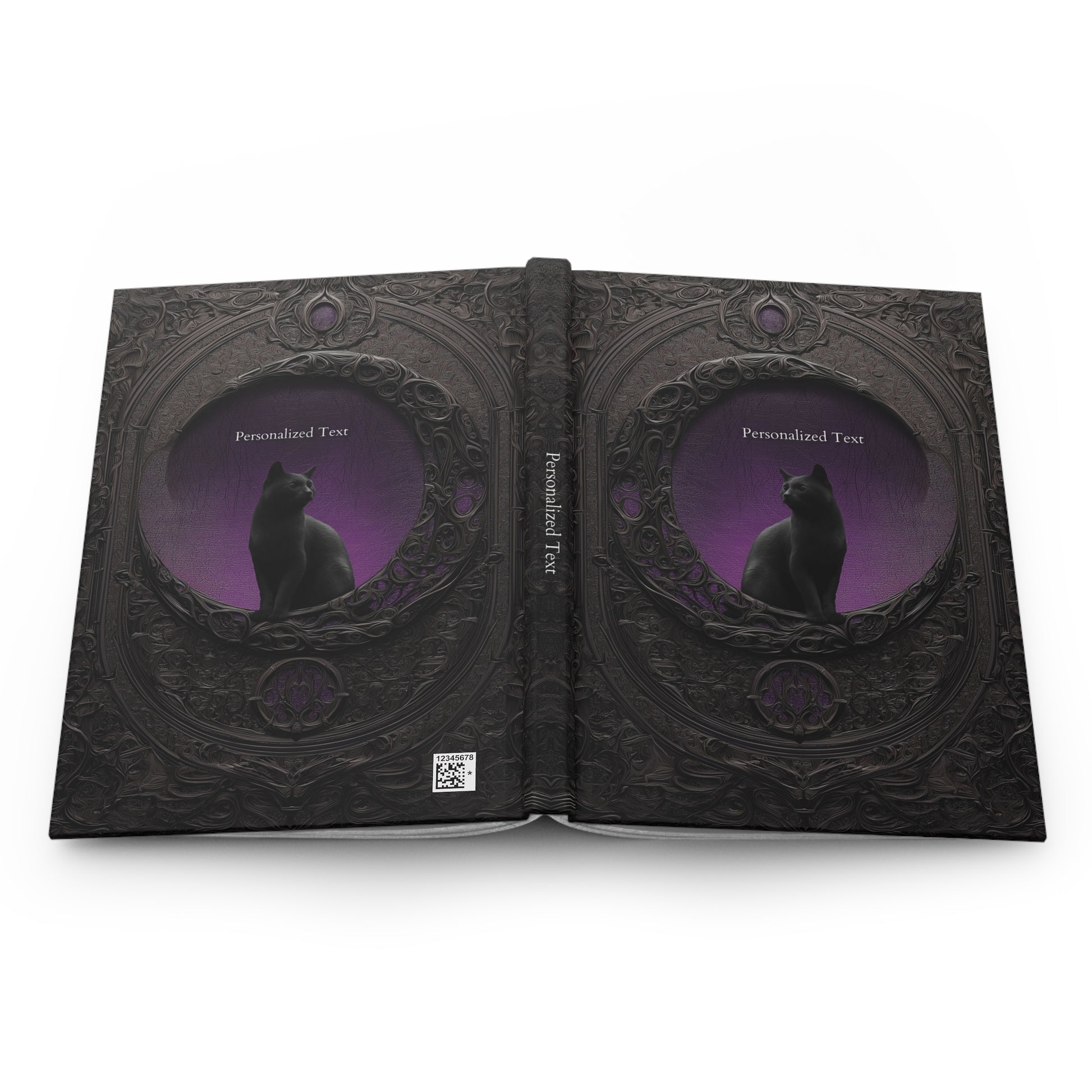 Gothic Black Cat Journal – Dark Fantasy Moon Notebook with Optional Personalized Text