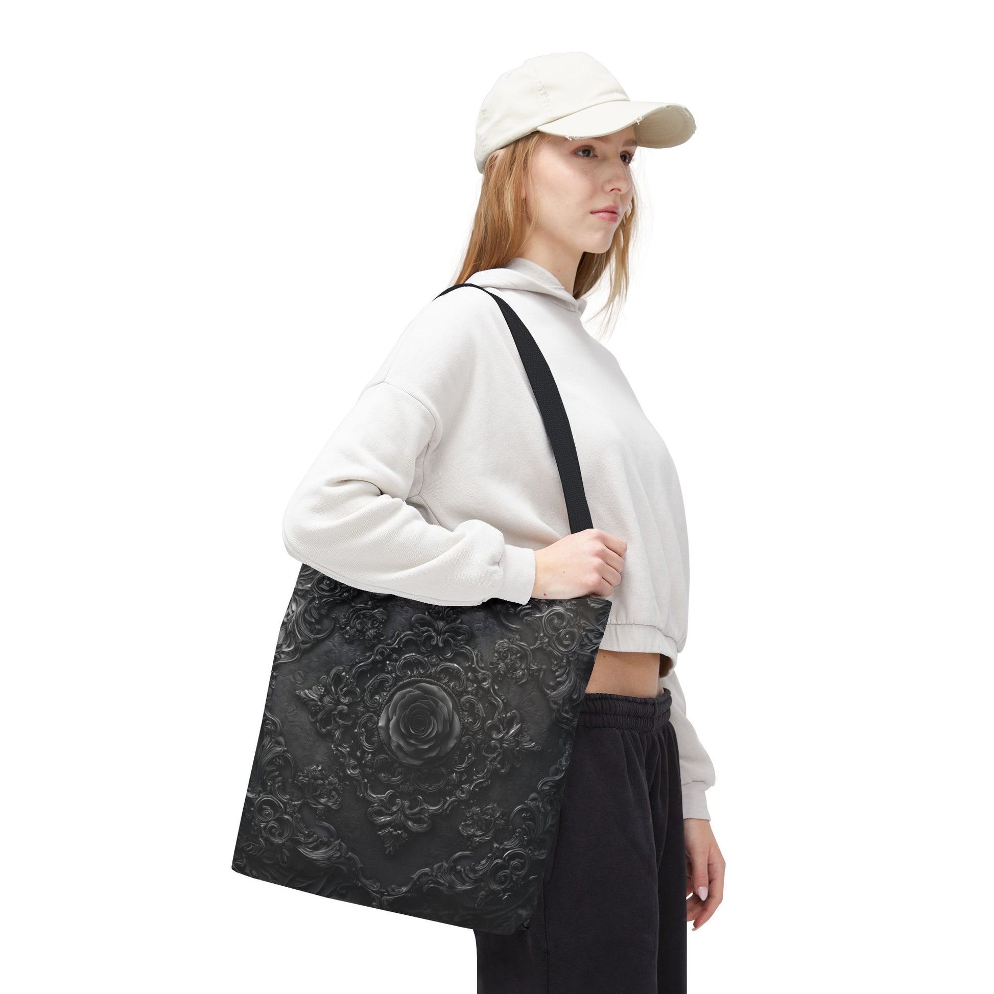 Gothic Black Rose Tote Bag - Ornate Baroque Dark Aesthetic