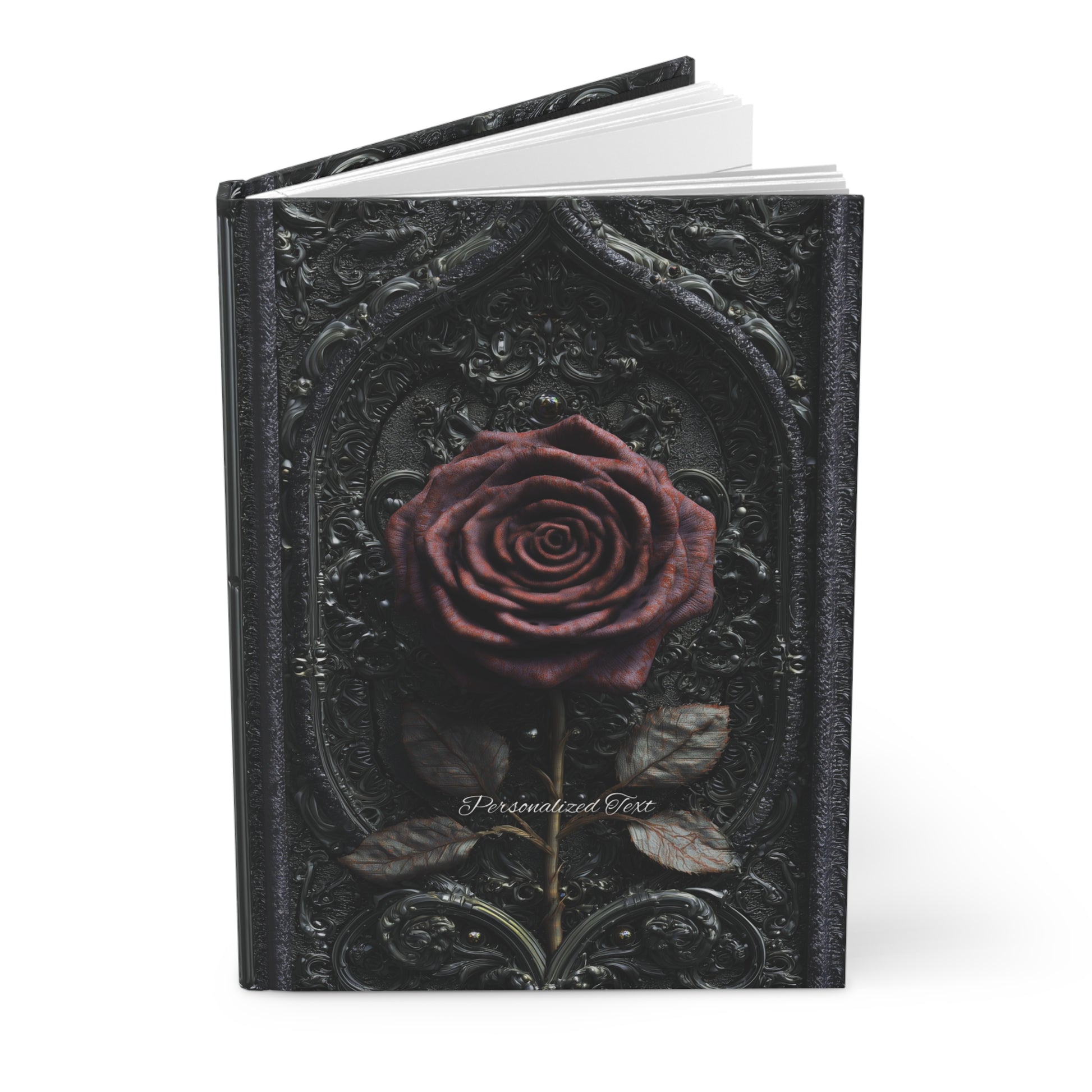 Gothic Red Rose Journal – Dark Romantic Floral Notebook with Optional Personalized Text