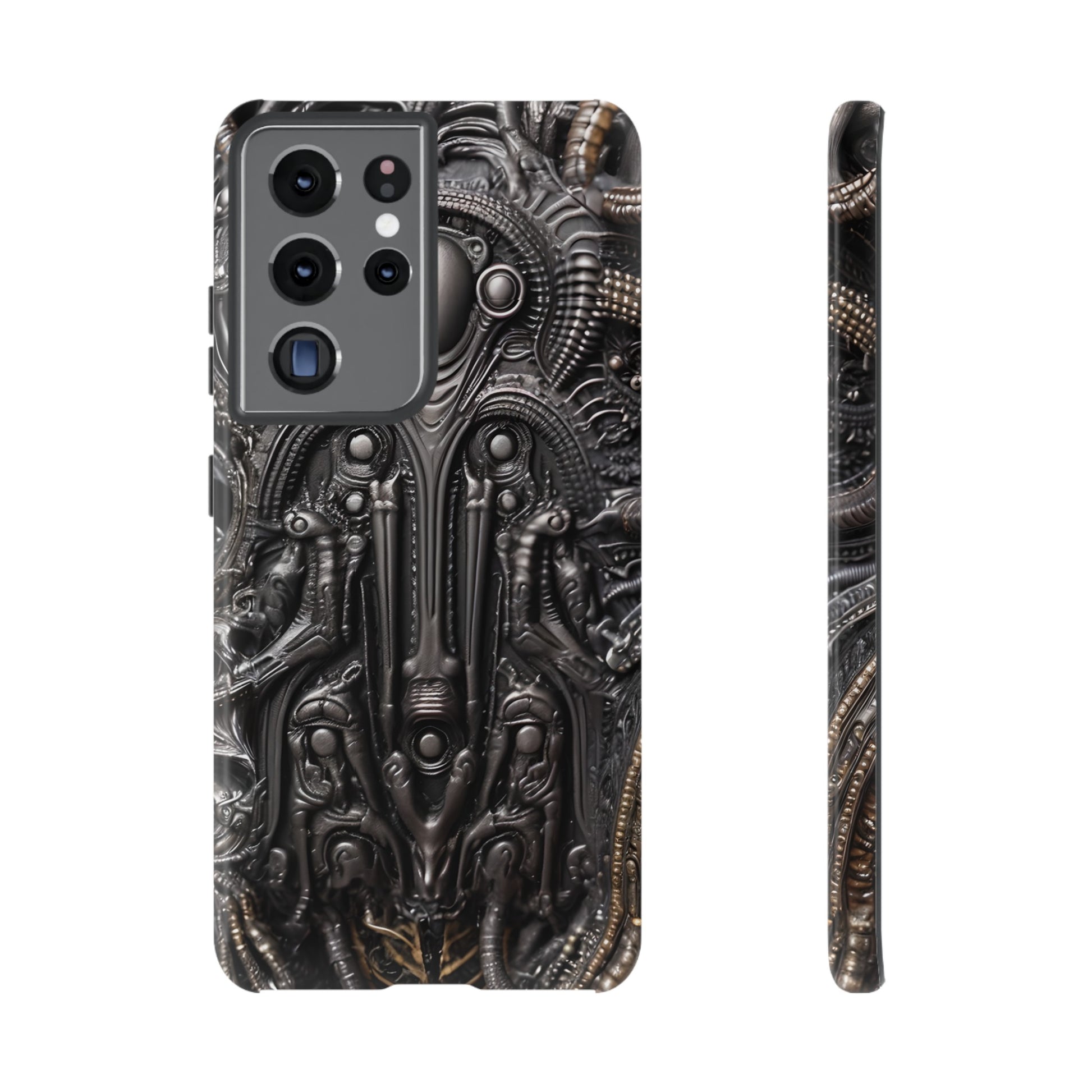 Biomechanical Horror Phone Case – Dark Sci-Fi Design for iPhone, Samsung Galaxy, Google Pixel Devices
